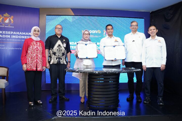 Jakarta – Kamar Dagang dan Industri (Kadin) Indonesia menandatangani nota kesepahaman (MoU) dengan Kementerian Pendayagunaan Aparatur Negara dan Reformasi Birokrasi (PANRB) terkait kerja sama transformasi digital. Penandatanganan tersebut berlangsung di Menara Kadin Indonesia Jakarta Selatan, Kamis (21/08/2025). Ketua Umum Kadin Indonesia Anindya Novyan Bakrie, menegaskan bahwa kerja sama ini penting untuk menciptakan sinergi antara dunia usaha