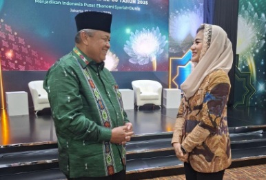 Jakarta – Kepala Badan Ekonomi Syariah Kamar Dagang dan Industri (Kadin) Indonesia Titi Khoiriah, menjadi pembicara pada Sarasehan Nasional Ekonomi Syariah 2025 yang diselenggarakan oleh Bank Indonesia, Majelis Ulama Indonesia (MUI), dan Komite Nasional Ekonomi dan Keuangan Syariah (KNEKS) di Jakarta pada Rabu (13/08/2025). Kegiatan ini merupakan forum strategis yang mempertemukan para pemangku kepentingan nasional untuk