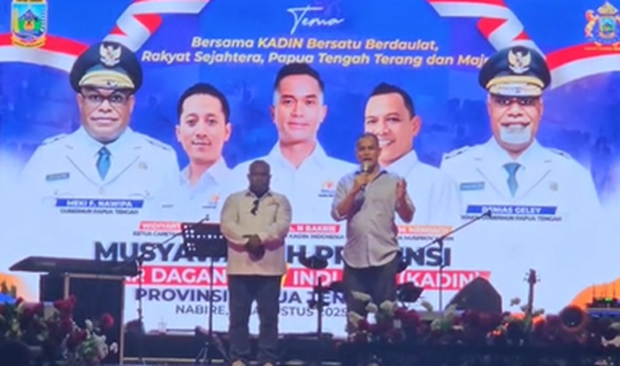Nabire – Kamar Dagang dan Industri (Kadin) Indonesia untuk pertama kalinya menggelar Musyawarah Provinsi (Muprov) Papua Tengah yang berlangsung di Ballroom Kantor Gubernur Bandara Lama, Nabire, Provinsi Papua Tengah, pada Sabtu (2/8/2025). Mengusung tema “Bersama Kadin Bersatu Berdaulat, Rakyat Sejahtera, Papua Tengah Terang dan Maju”, Muprov ini menjadi tonggak sejarah kehadiran Kadin secara utuh dan sah