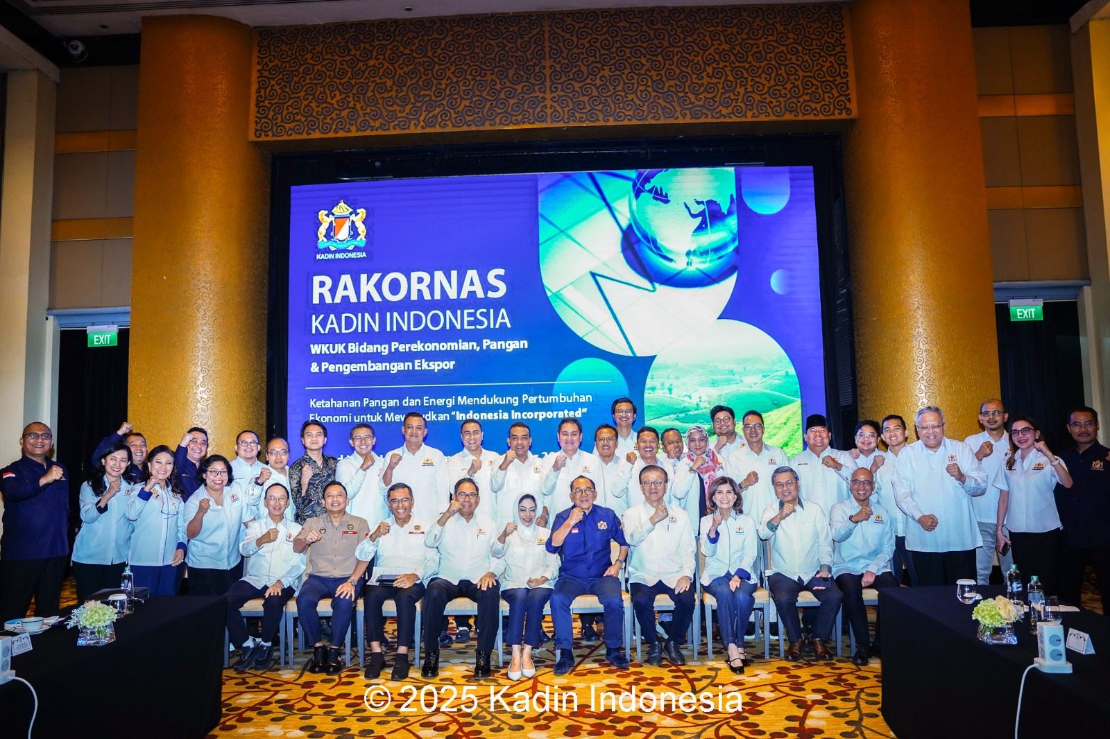 Jakarta – Kamar Dagang dan Industri (Kadin) Indonesia melalui Bidang Perekonomian, Pangan, dan Pengembangan Ekspor menggelar Rapat Koordinasi Nasional (Rakornas) bertema “Ketahanan Pangan dan Energi Mendukung Pertumbuhan Ekonomi untuk Mewujudkan Indonesia Incorporated” di Hotel Grand Hyatt, Jakarta Pusat, Jumat (07/11/2025). Rakornas ini dihadiri jajaran pengurus Kadin Indonesia di antaranya Wakil Ketua Umum Koordinator (WKUK) Bidang Perekonomian