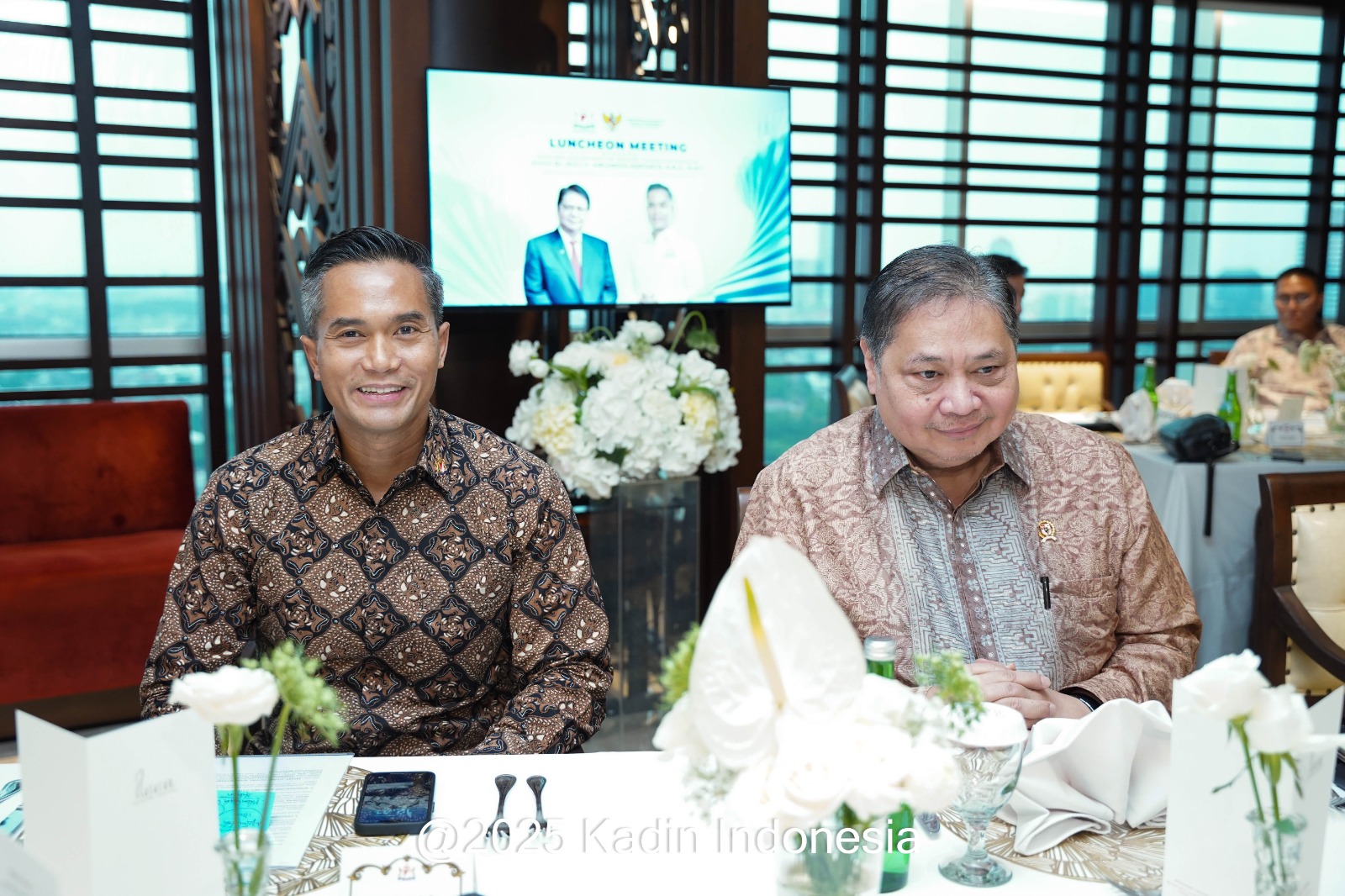Dalam kesempatan tersebut, turut hadir jajaran pengurus Kadin Indonesia di antaranya Wakil Ketua Umum Koordinator (WKUK) Bidang Organisasi, Komunikasi dan Pemberdayaan Daerah Erwin Aksa, WKUK Bidang Luar Negeri James T. Riady, WKUK Bidang Pangan Mulyadi Jayabaya, WKUK Bidang Infrastruktur dan Pembangunan Kewilayahan Carmelita Hartoto, WKUK Bidang Hukum dan HAM, Sarana/Prasarana Azis Syamsuddin, WKUK Bidang Investasi, Hilirisasi, Energi dan Lingkungan Hidup Bobby Gafur Umar, WKUK Bidang Pengembangan Ekspor Juan Permata Adoe, Wakil Ketua Umum (WKU) Bidang Pengembangan Asosiasi/Himpunan/Anggota Luar Biasa Benny Soetrisno, WKU Bidang Perindustrian Saleh Husin, serta WKU Bidang Organisasi, Taufan Eko Nugroho Rotorasiko.